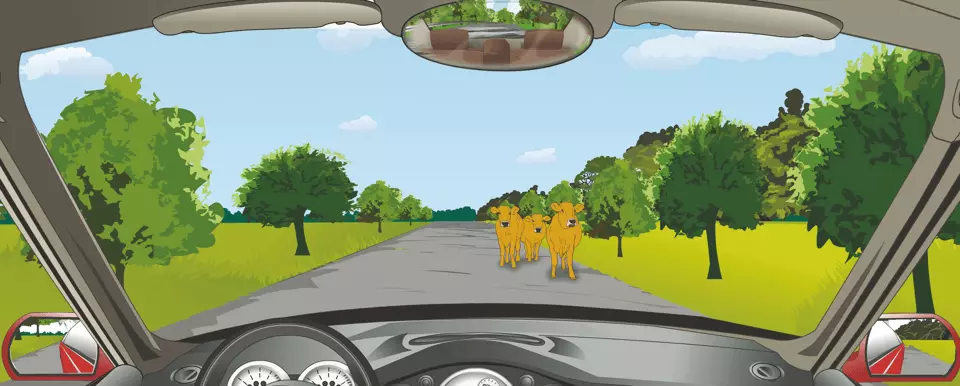 驾驶机动车在这样的路段要注意观察,随时避让横过道路的动物。